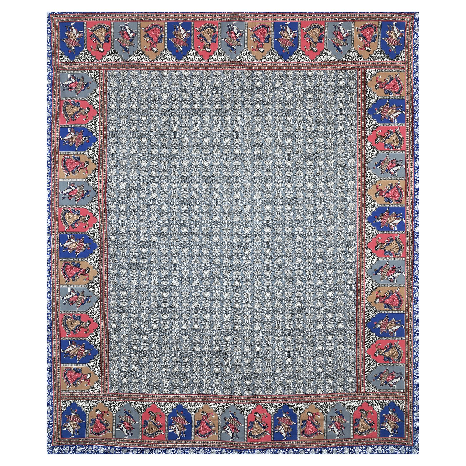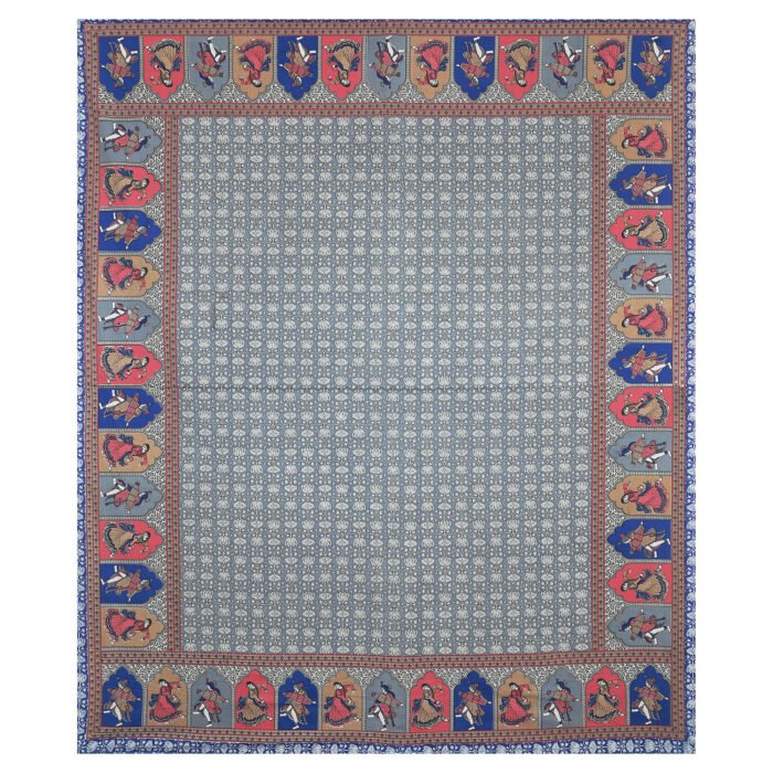 Soft Cotton Dandiya Print Jaipuri Bedsheet inspired by estate heritage. Breathable and Wrinkle Free - Dimension (90" x 108" Inch, 7.5ft -9ft) will transform your bedroom into a heritage retreat featuring a timeless combination of blue, Grey, Pink, and Red with regal Dandiya prints.